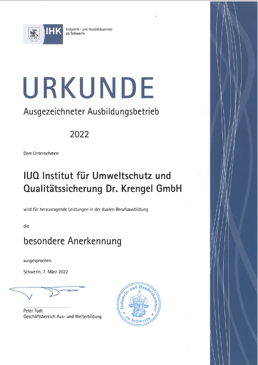 Die IHK hat uns für das Ausbildungsjahr 2022 eine besondere Anerkennung für herausragende Leistungen in der dualen Berufsausbildung ausgesprochen. Die Auszeichnung erfüllt uns mit Stolz und motiviert uns weiterhin unsere Azubis tatkräftig bei Ihrer Ausbildung zu unterstützen.